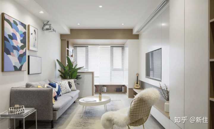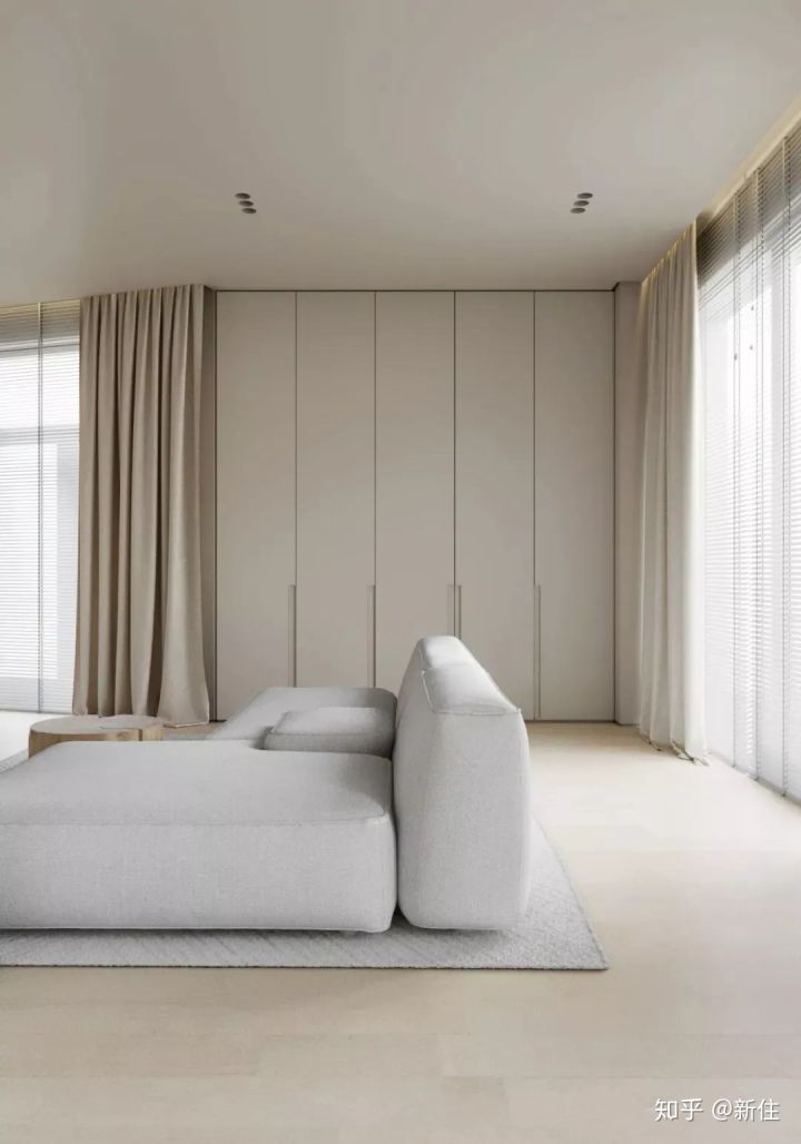 普通的家裝窗簾是可以看到軌道的,而極簡裝修會通過窗簾盒,把軌道隱藏起來。
