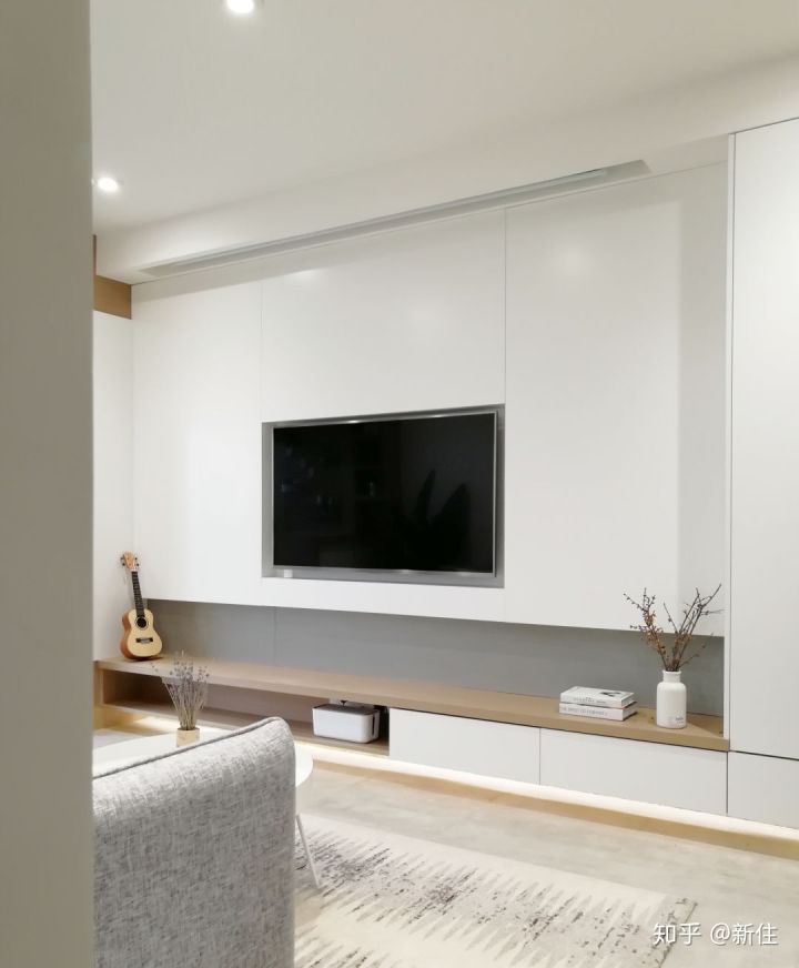 客廳這樣既可以做收納,視覺上看起來清爽,沒有凌亂的線路。