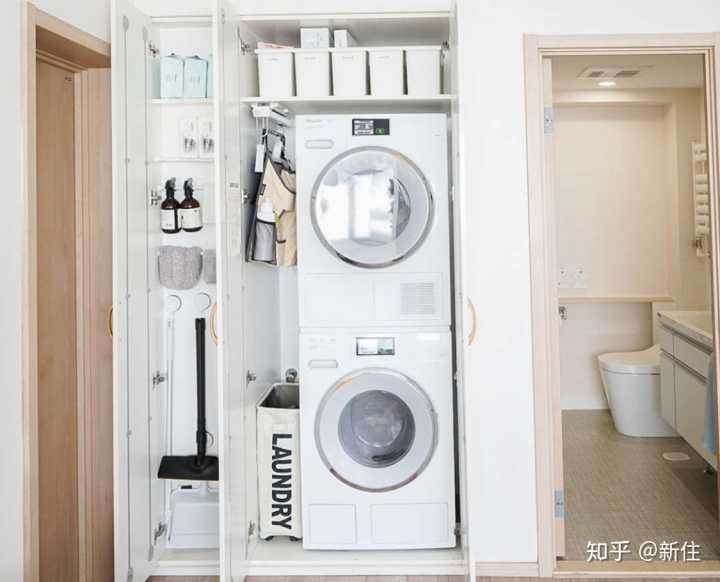 打開柜門才會發(fā)現(xiàn),連洗衣機、烘干機全都能藏進去。